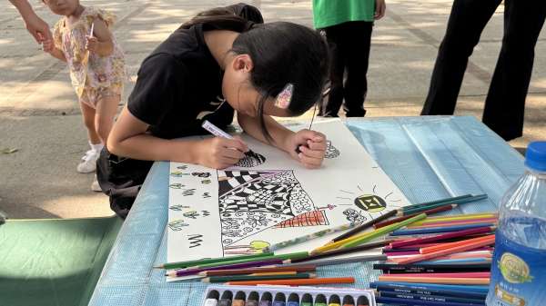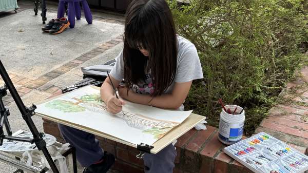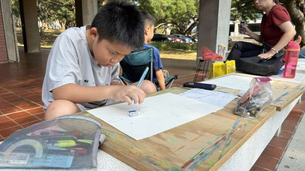 活動當天迎來燦爛明媚的陽光,從一早便能感受到家長與孩子們的期待與投入。許多家庭在報到時間前就抵達銘賢堂,準備迎接這場藝術盛事。隨著比賽開始,小畫家們分散在校園各處,仔細觀察東海大學的景色與建築輪廓。有人坐在草地上捕捉光影變化,有人在文理大道描繪步道的美,也有人以路思義教堂為主題,大膽詮釋其獨特造型。參賽者時而低頭構思、時而揮動畫筆,全神貫注地用色彩記錄眼前的美景。整座校園因他們的創意而變得更加生動活潑,彷彿每一筆都將東海大學的故事延伸到畫紙之上。