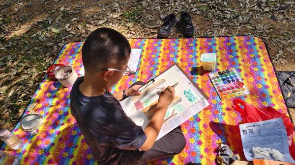 留言家長 Ya Yu: 從小就常去裕元教育基金會的種子書坊、也參與過演講講座,這次第一次參加寫生活動!愛畫畫的孩子行前就很興奮,這是他的第一次寫生,他說沒想到大家都這麼喜歡畫畫,都這麼會畫畫!可以沐浴在大自然下盡情發揮創作!